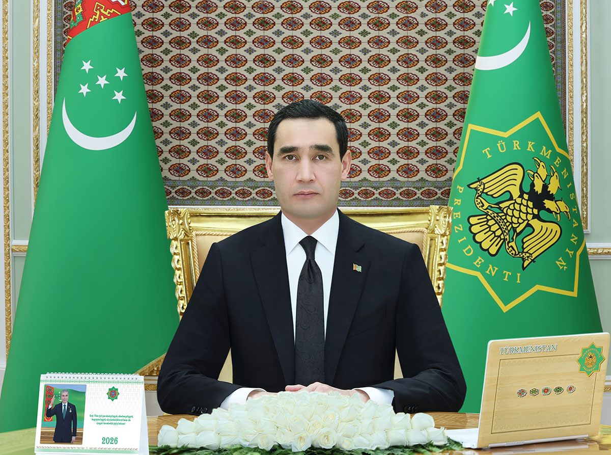 Ata Watanymyzy mundan beýläk-de ösdürmek maksady bilen, biz ýetip gelen 2026-njy ýyla «Garaşsyz, baky Bitarap Türkmenistan — bedew batly at-myradyň mekany» ýyly diýip at berdik. Hoşniýetli arzuw-umytlar bilen garşy alýan täze ýylymyzda mukaddes Garaşsyzlygymyzyň şanly 35 ýyllygyny belläp geçeris. Watanymyzy bagtyýarlygyň we rowaçlygyň mekanyna öwürmek ugrunda yhlas bilen zähmet çekeris.